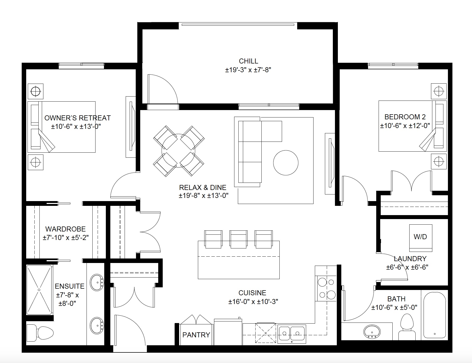 2 BEDROOMS / ± 1,075 SF